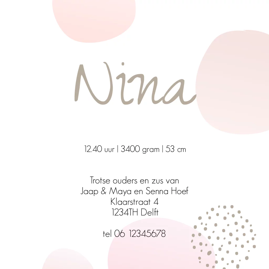 Geboortekaartje meisje met zachte tinten bollen / cirkels en versieringen met goudfolie op de voorkant. (20265)