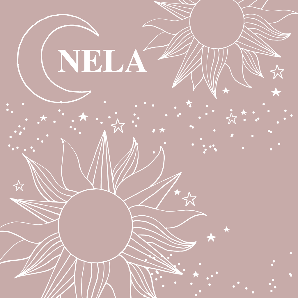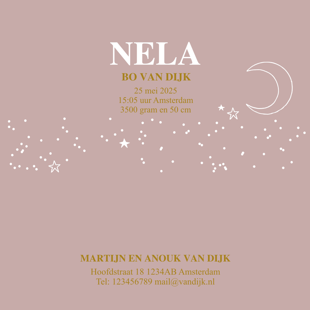 Een hip en stijlvol geboortekaartje met zon maan en sterren in goudfolie. Alle kleuren zijn aanpasbaar. Vervang ook de teksten. (22065)