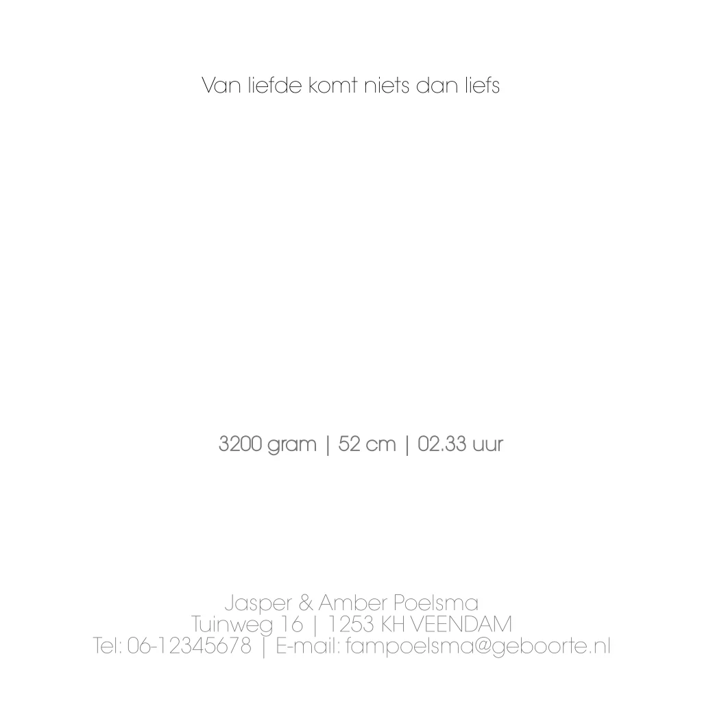 Bij dit kaartje kun je foliedruk aan alle zijdes gebruiken. Je kunt dit kaartje ook krijgen met alleen foliedruk op de voorkant waardoor de kosten per kaartje lager zijn. Vragen hierover? Neem gerust contact op.