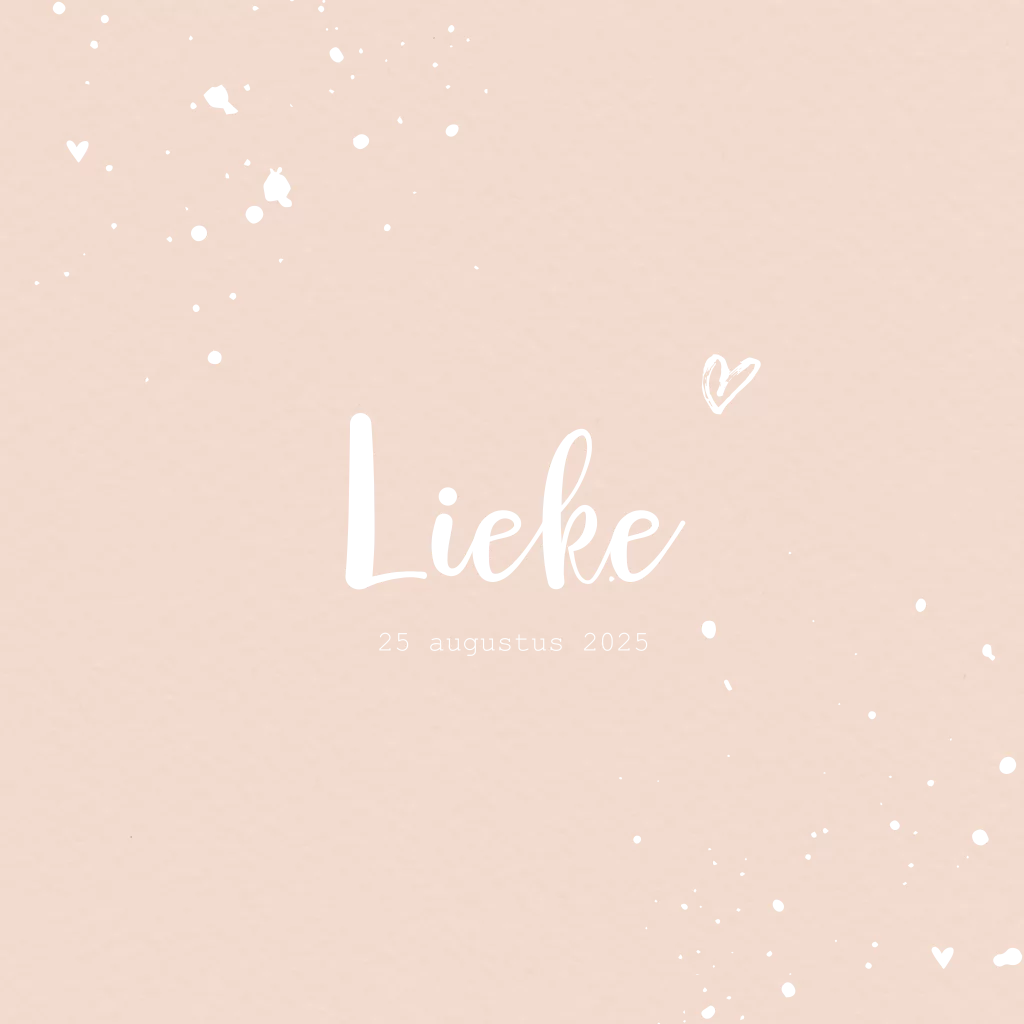 Trendy geboortekaartje rosegoudfolie voor meisjes met roze achtergrond en spetters. (21553)