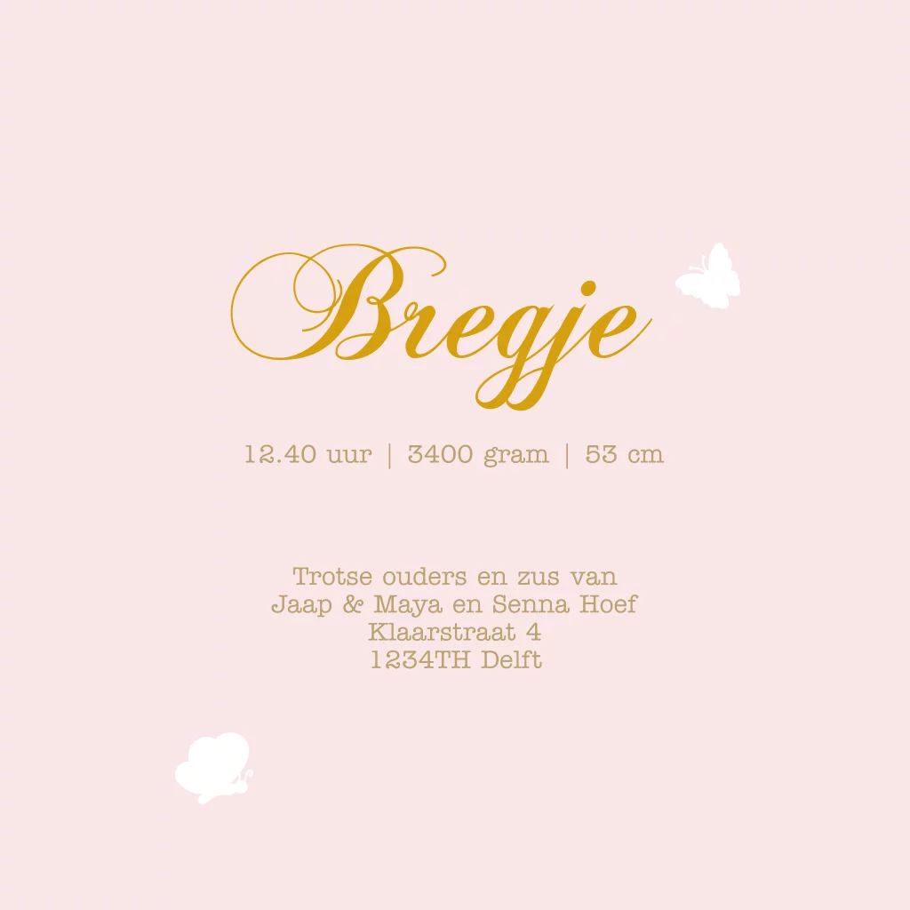 Profiel geboortekaartje grote broer tweede kindje zusje goudfolie