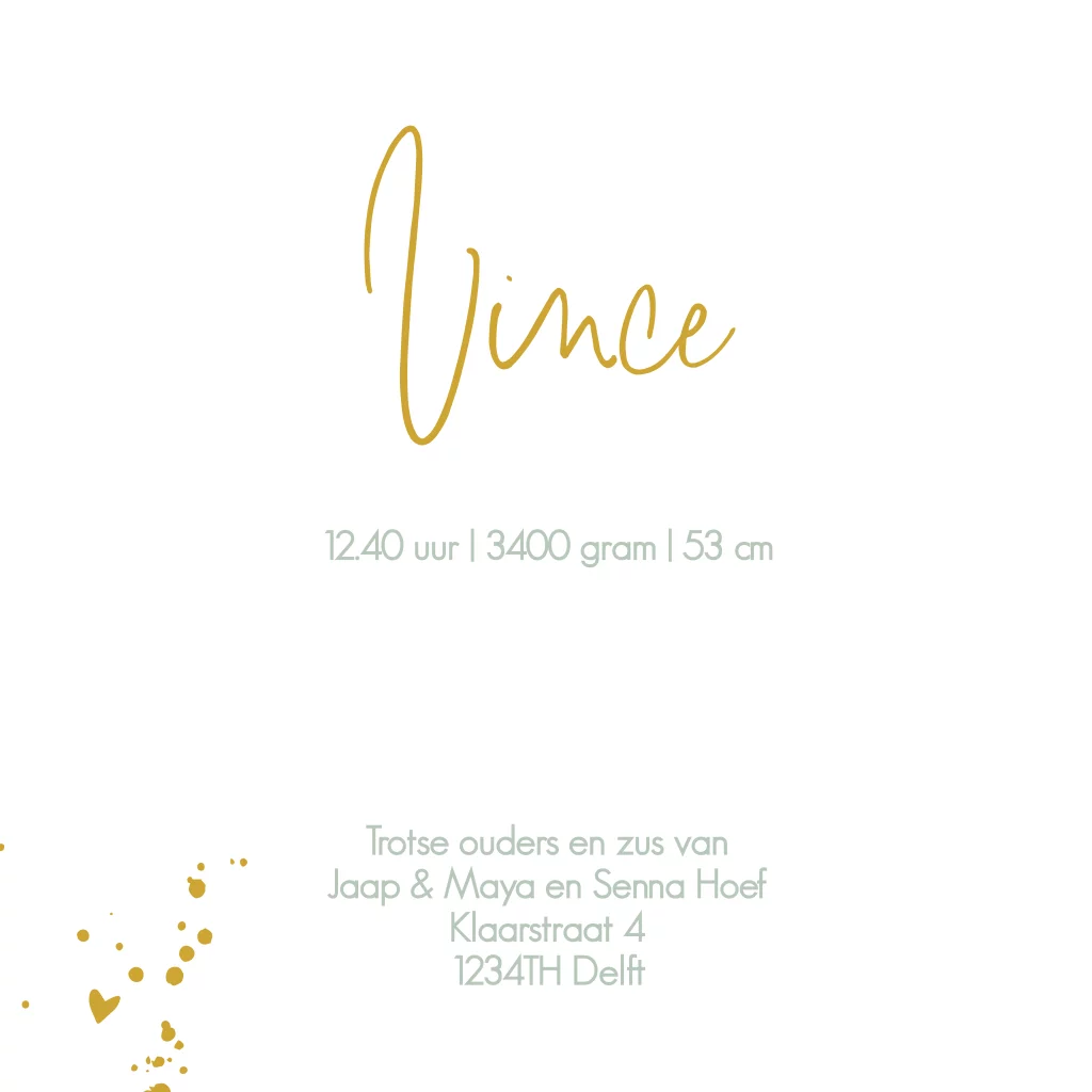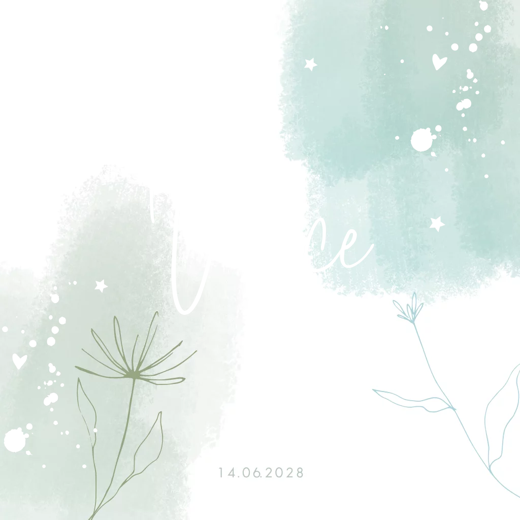 Geboortekaartje jongen takje met bloem goudfolie. (21170)