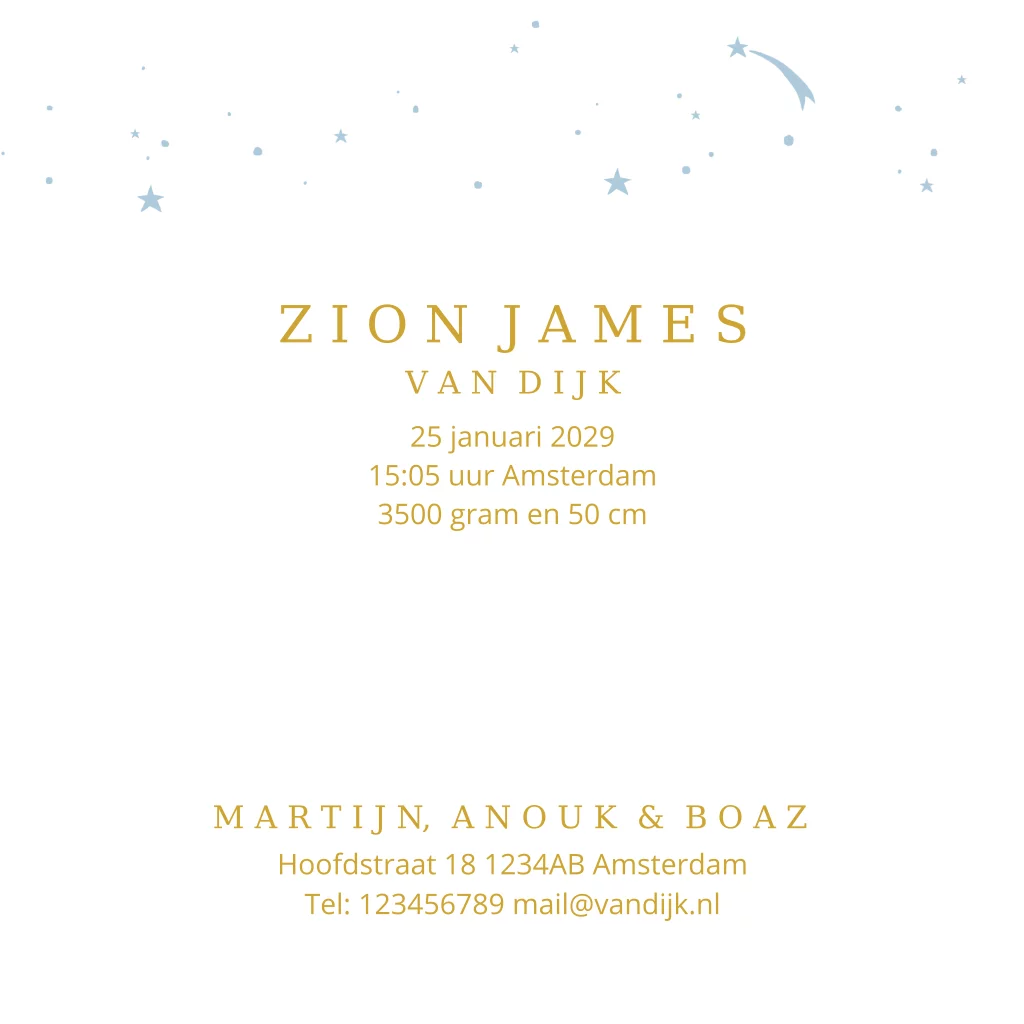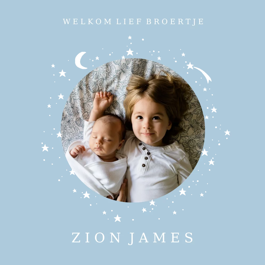 Geboortekaartje broertje met maan sterren foto goudfolie