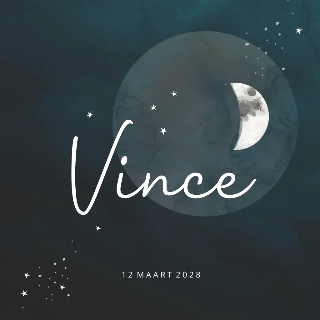 Modern jongens geboortekaartje met voornaam en sterren in goudfolie met sterren en maan. Voor een jongen. (22059)