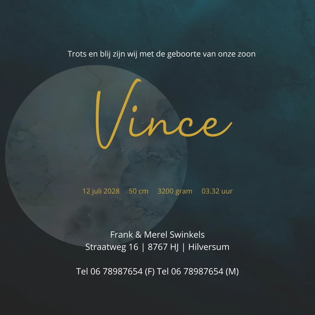 Geboortekaartje jongen goudfolie met sterren en maan