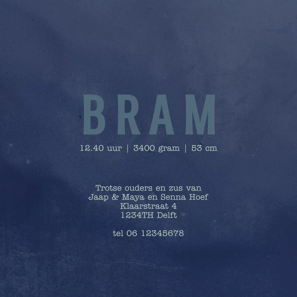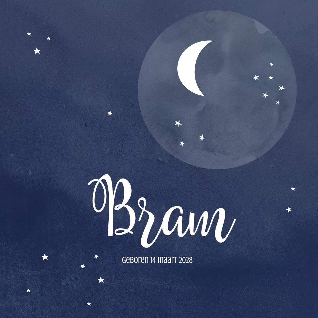 Jongens geboortekaartje blauwe achtergrond met maan en sterren folie