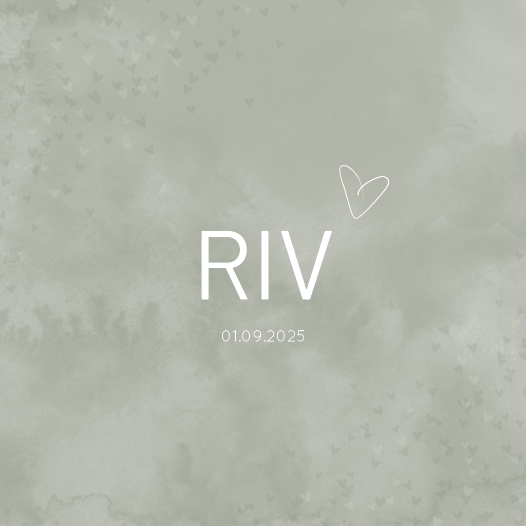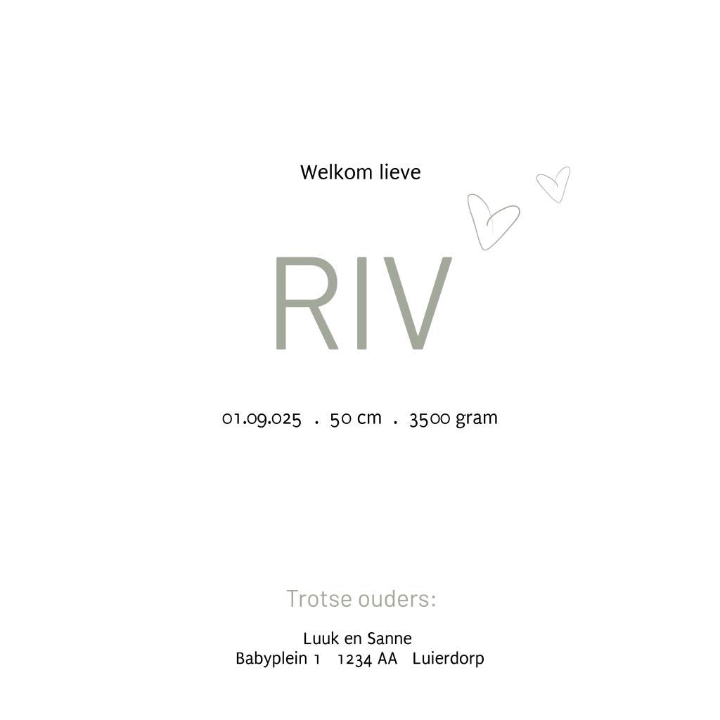 Hip jongens geboortekaartje met groene waterverf, hartjes en goudfolie. (21561)