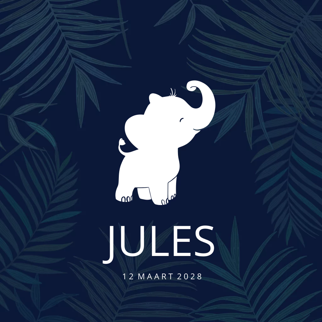 Geboortekaartje jongen met klein olifantje goud folie