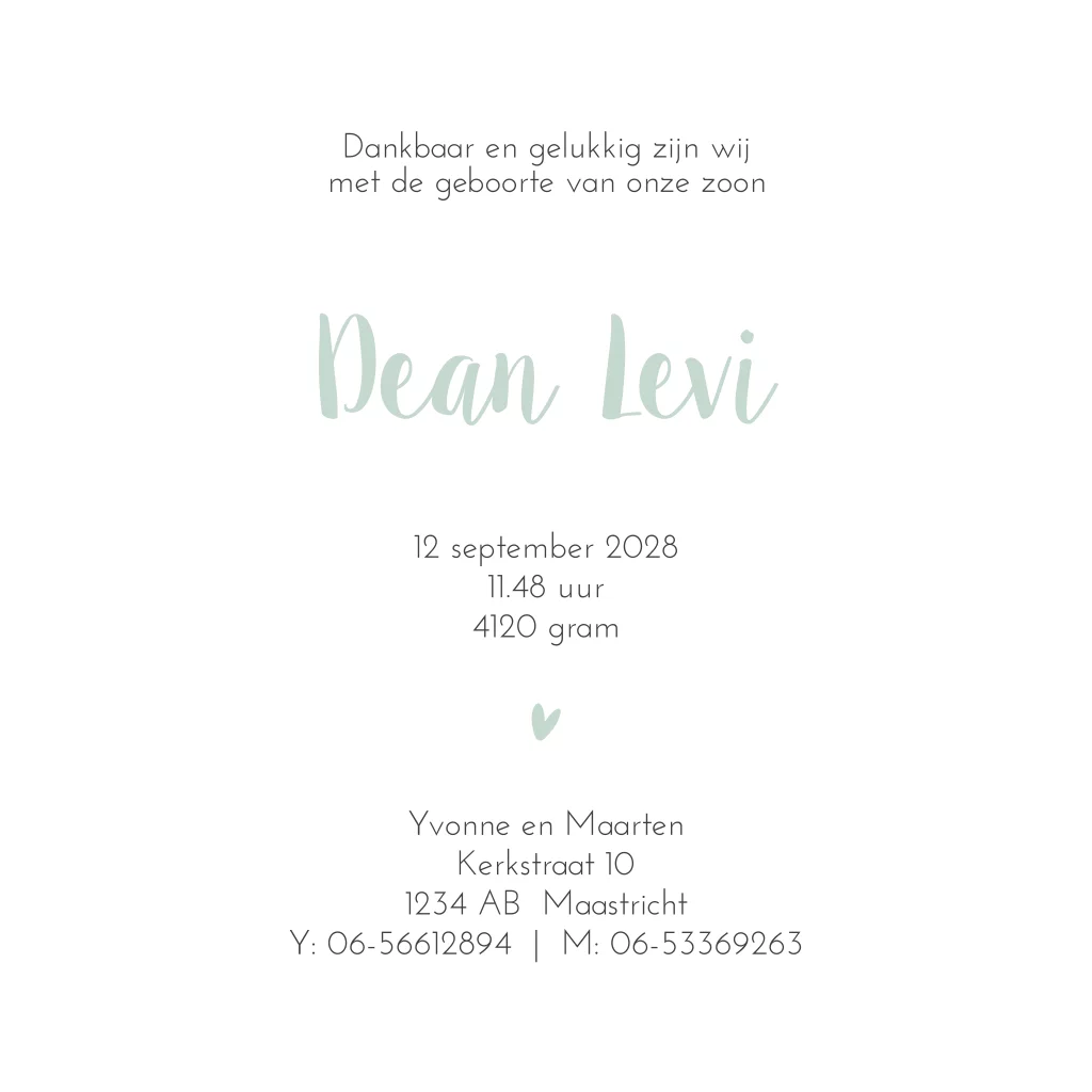 Geboortekaartje jongen met een dieren zoals een nijlpaard, zebra, aap en hartjes in zwart folie op een mintgroene cirkel. (22076)