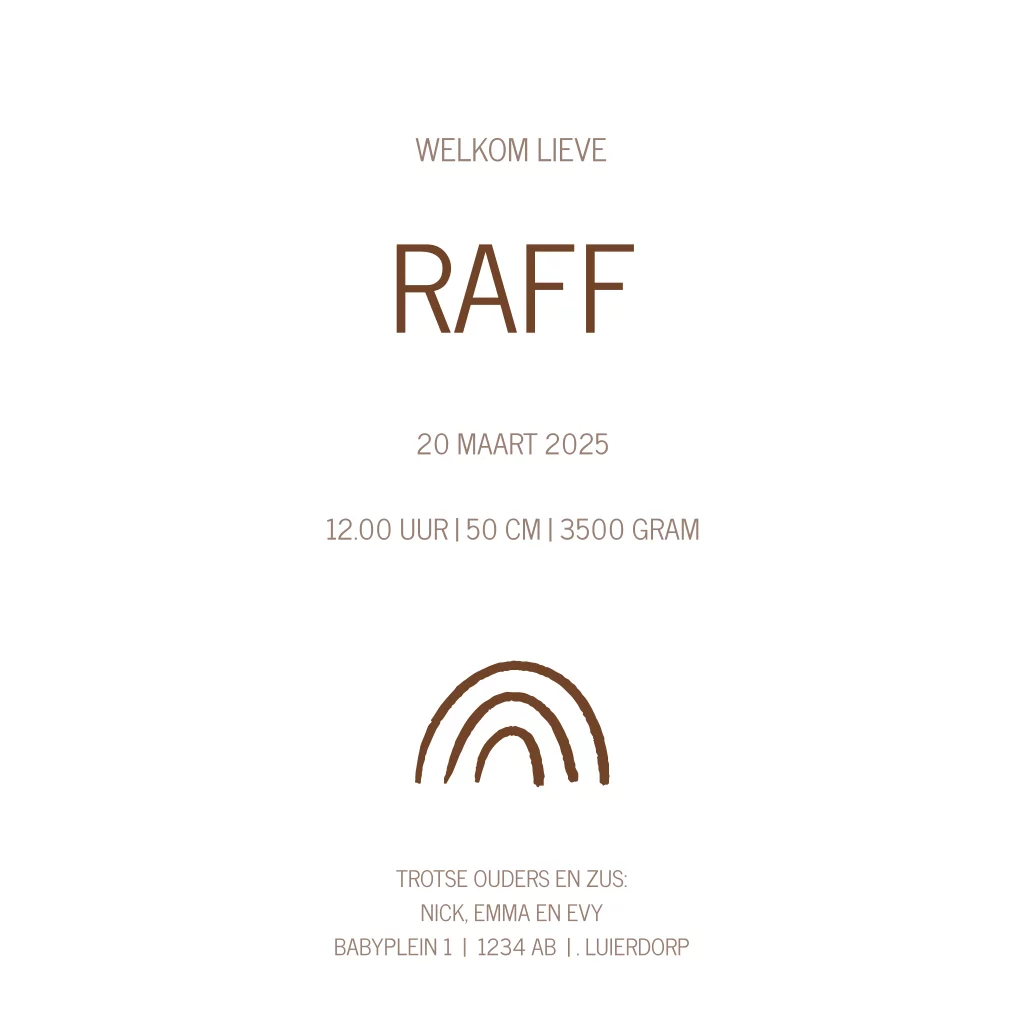 Geboortekaartje jongen regenboogje hoogglans koper lak