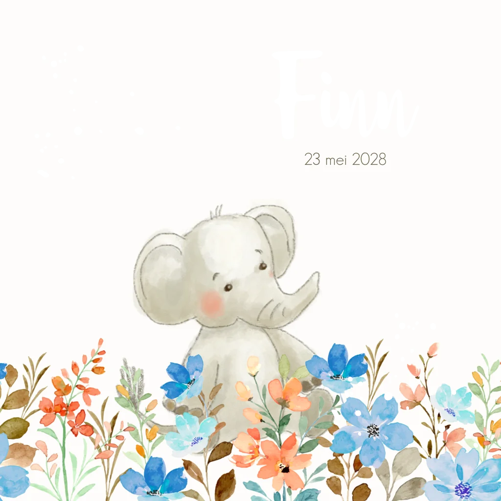 Geboortekaartje olifant jongen met bloemen en foliedruk