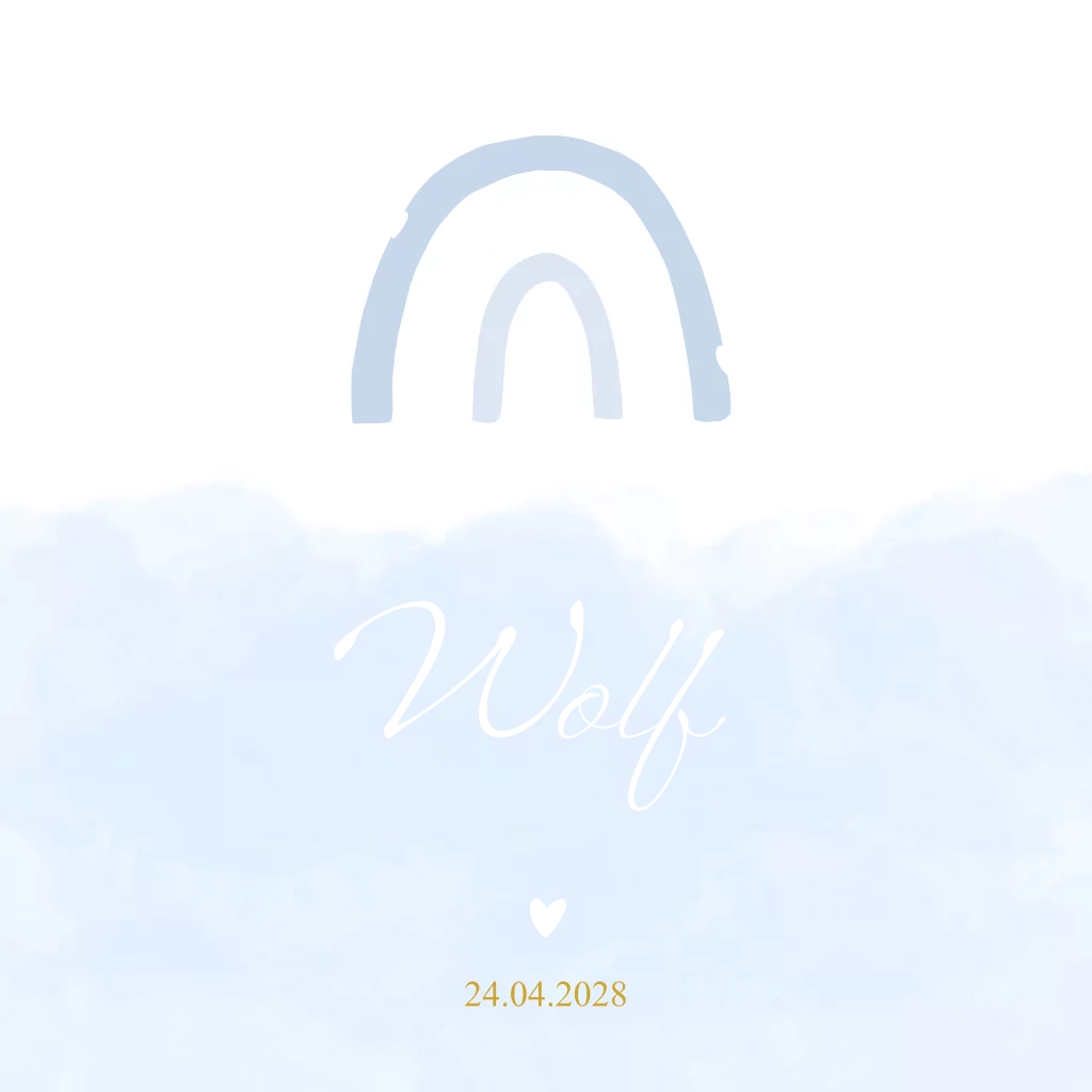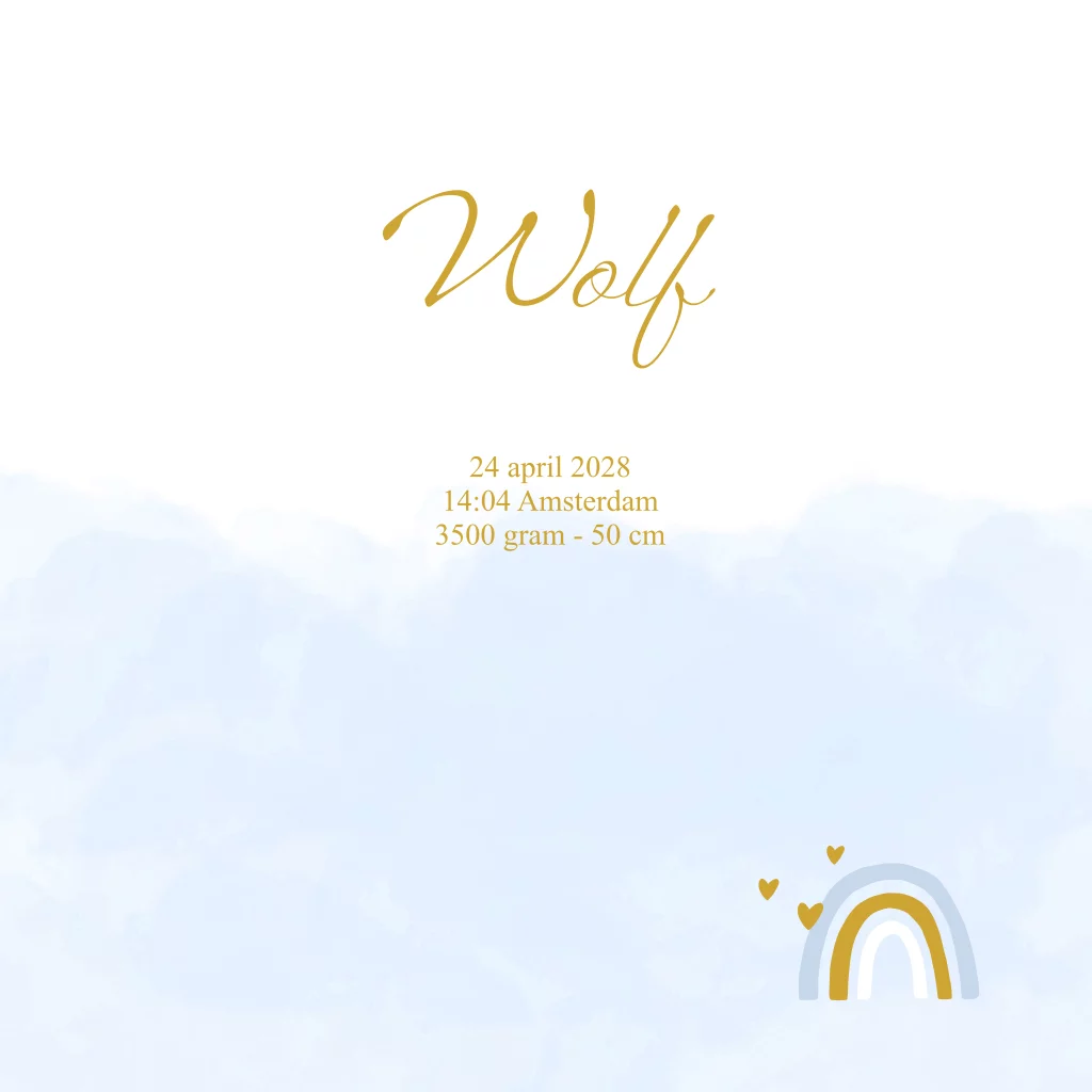 Geboortekaartje regenboog wolken goudfolie jongen