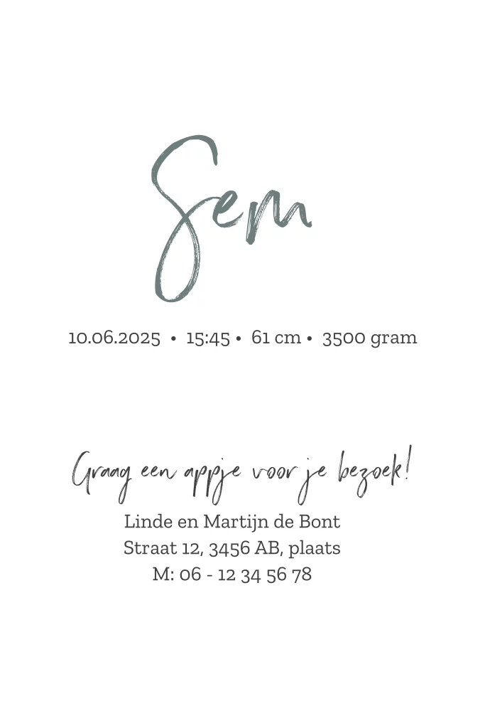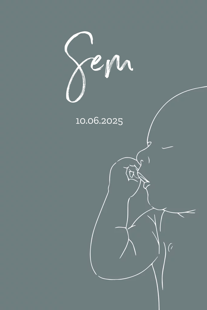 Geboortekaartje voor een jongen met lijntekening van een baby. (21608) Geboortekaartje Sem.
