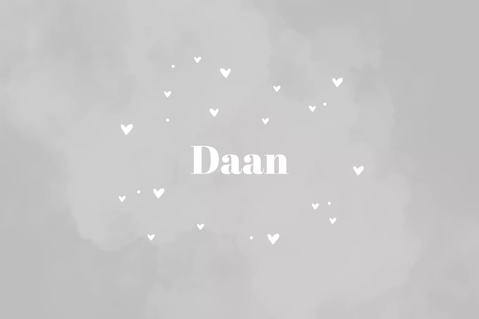 Geboortekaartje voor een jongen met watercolour en gouden hartjes