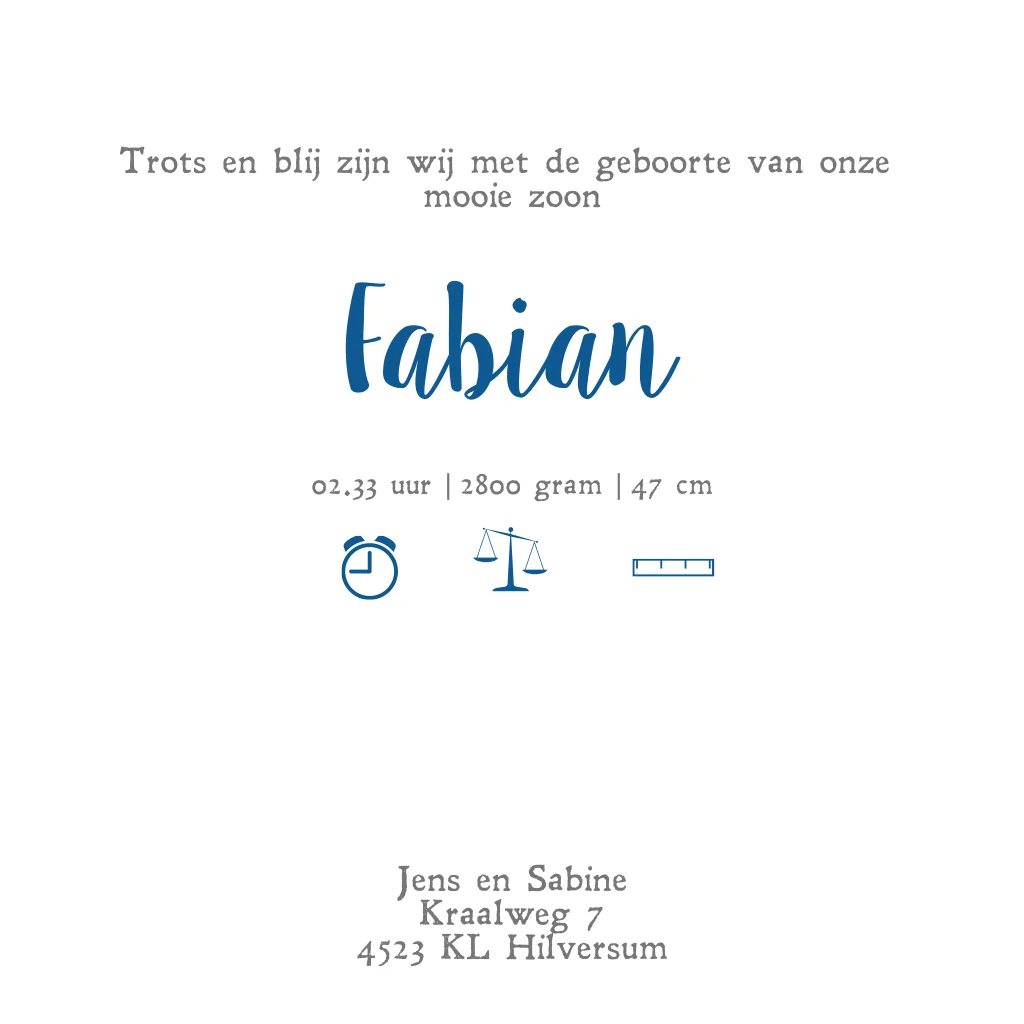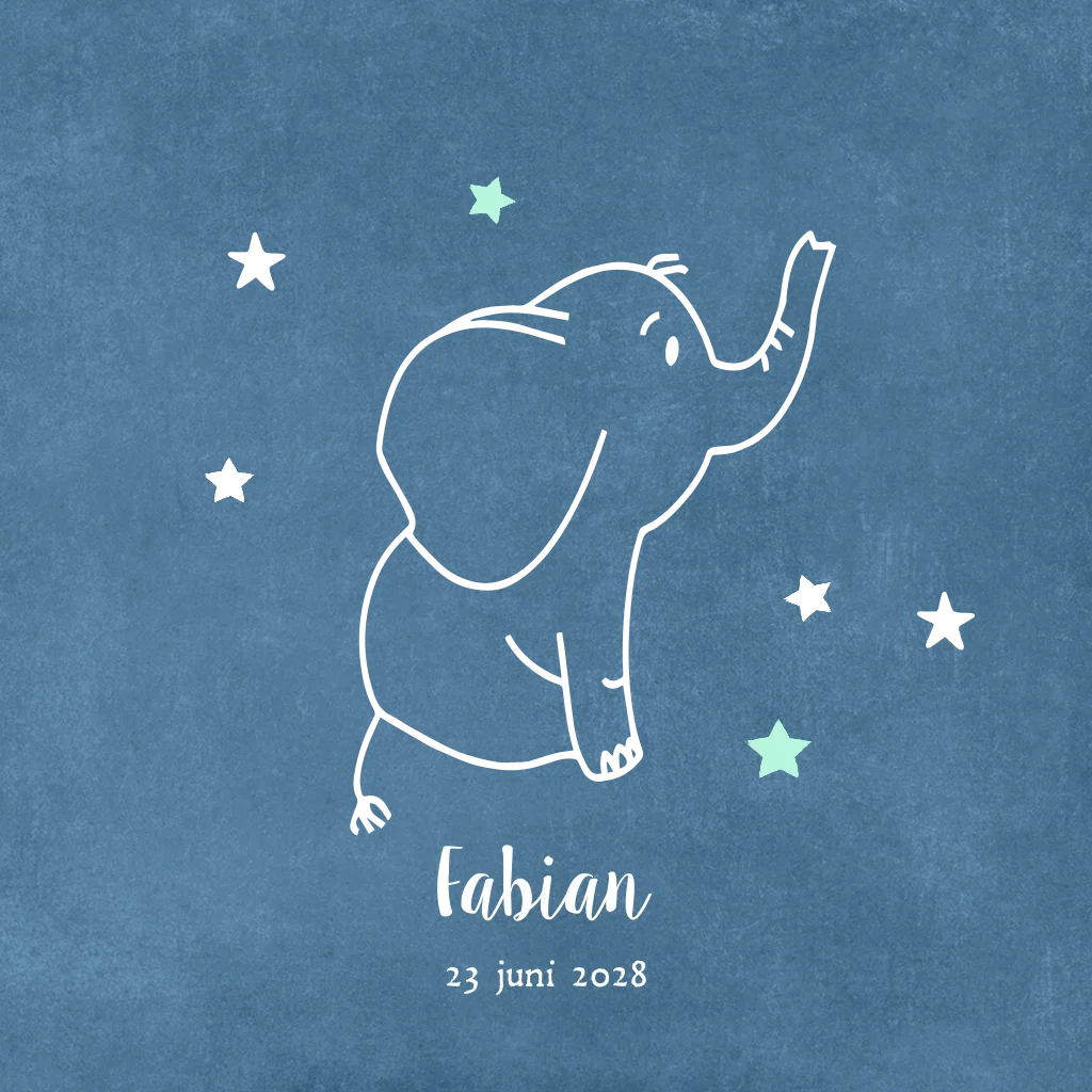 Lief geboortekaartje jongen met een lijntekening van een olifant. Echt zilverfolie druk. (8563)