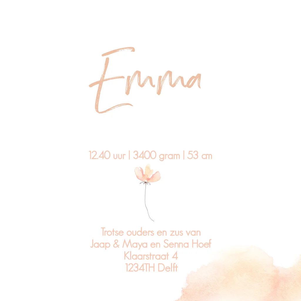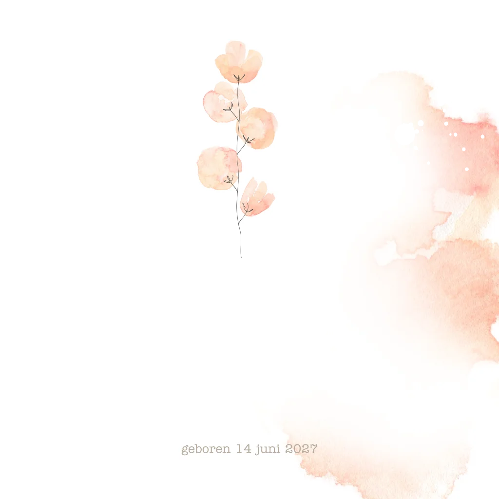 Geboortekaartje meisje bohemian met een bloemen takje met koperfolie foliedruk. (21168) Geboortekaartje Emma