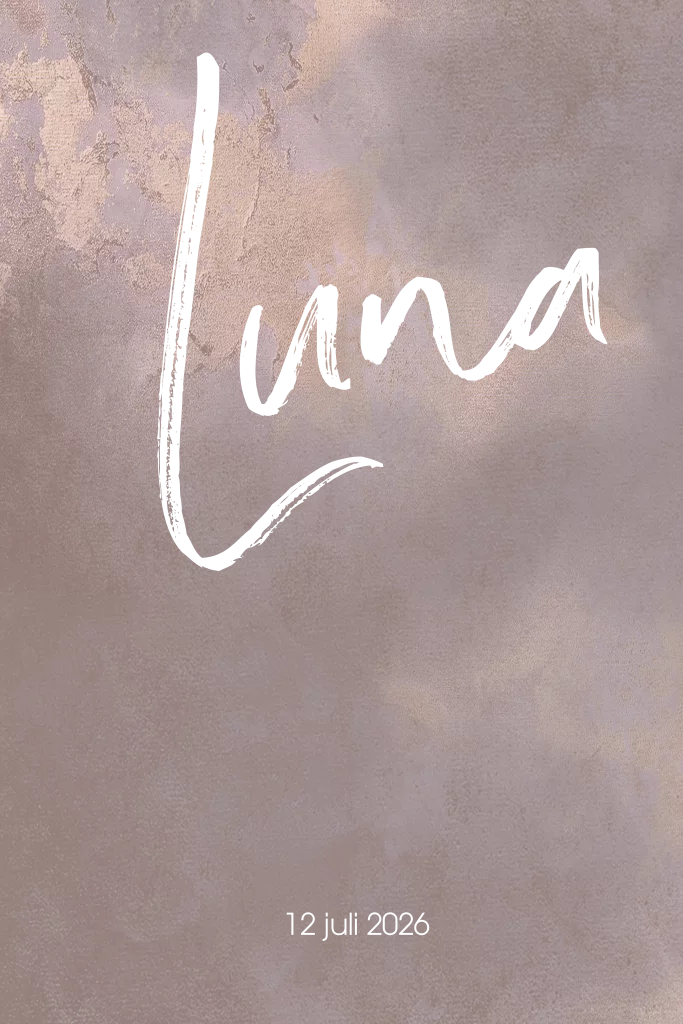 Geboortekaartje meisje kleurrijk foliedruk enkel op een lichtroze steen-look achtergrond. De kleur is naar wens aan te passen. (987654) Geboortekaartje Luna