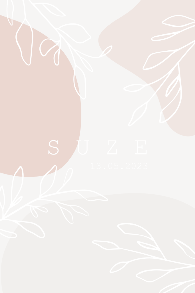 Geboortekaartje meisje botanisch abstracte vormen bladeren