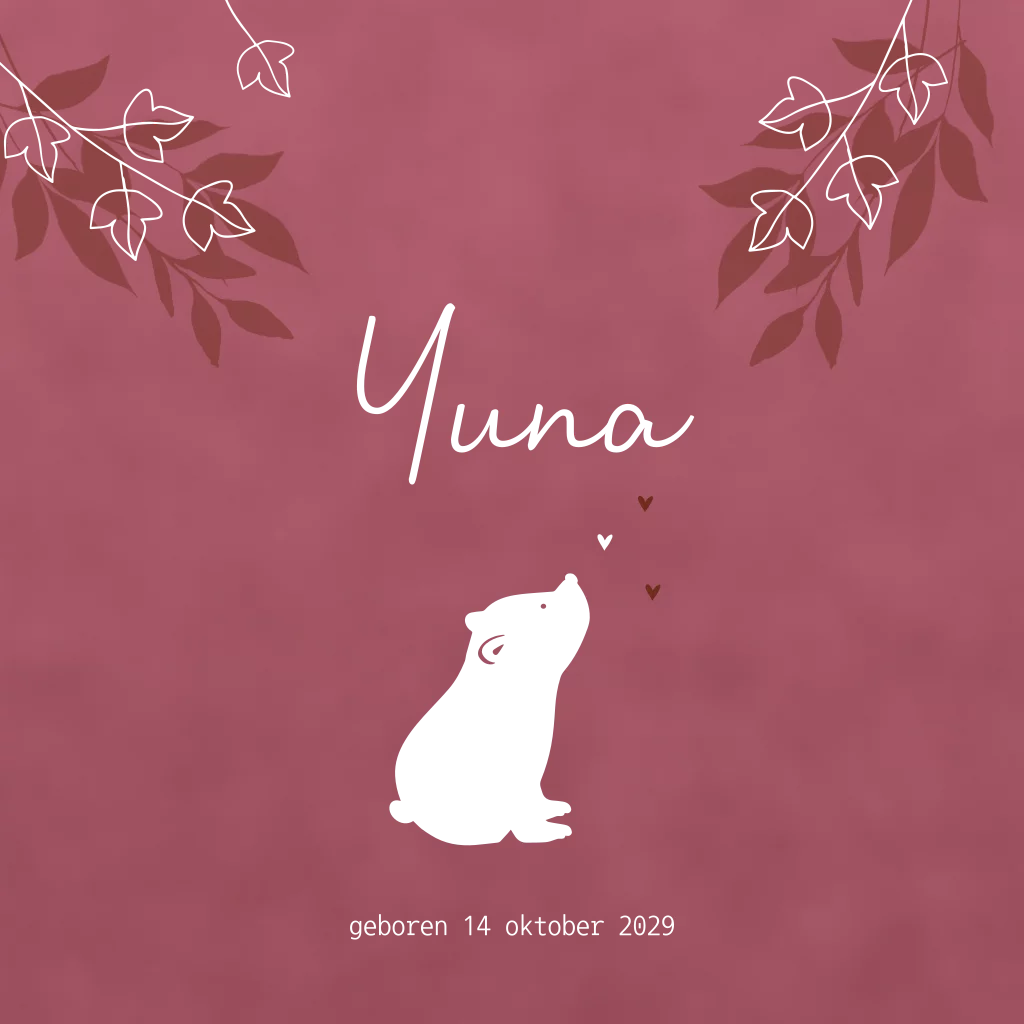 Geboortekaartje meisje winters thema met een ijsbeer beer met rosé goudfolie velvet. (22553)