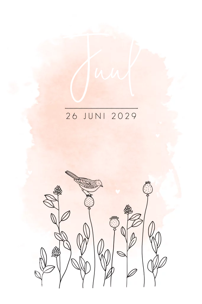 Geboortekaartje meisje met vogel pentekening foliedruk