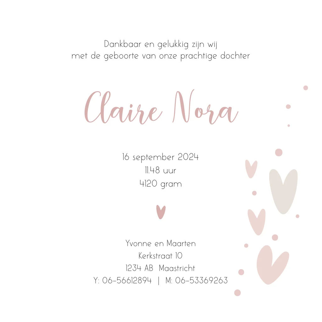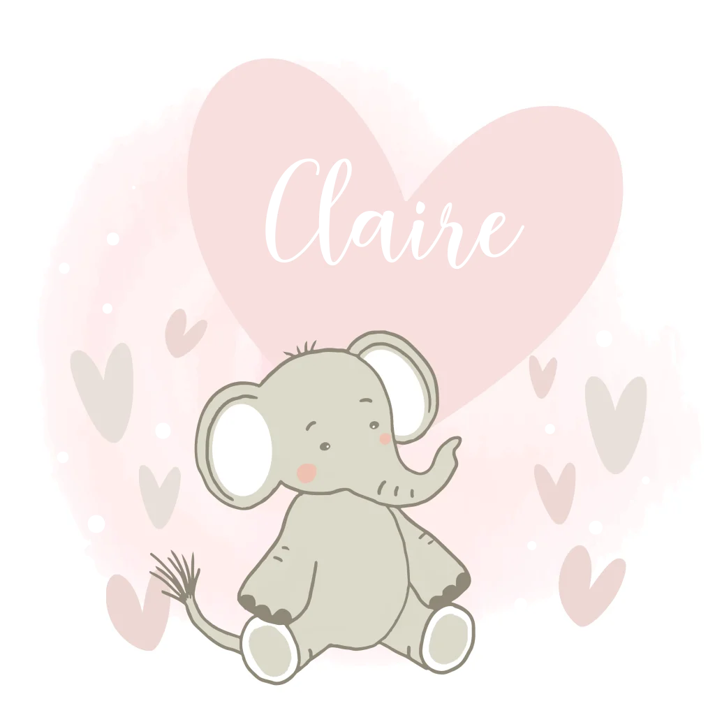 Geboortekaartje voor de geboorte van een meisje met een lief olifantje met hartjes, watercolor en confetti in foliedruk. (22384)