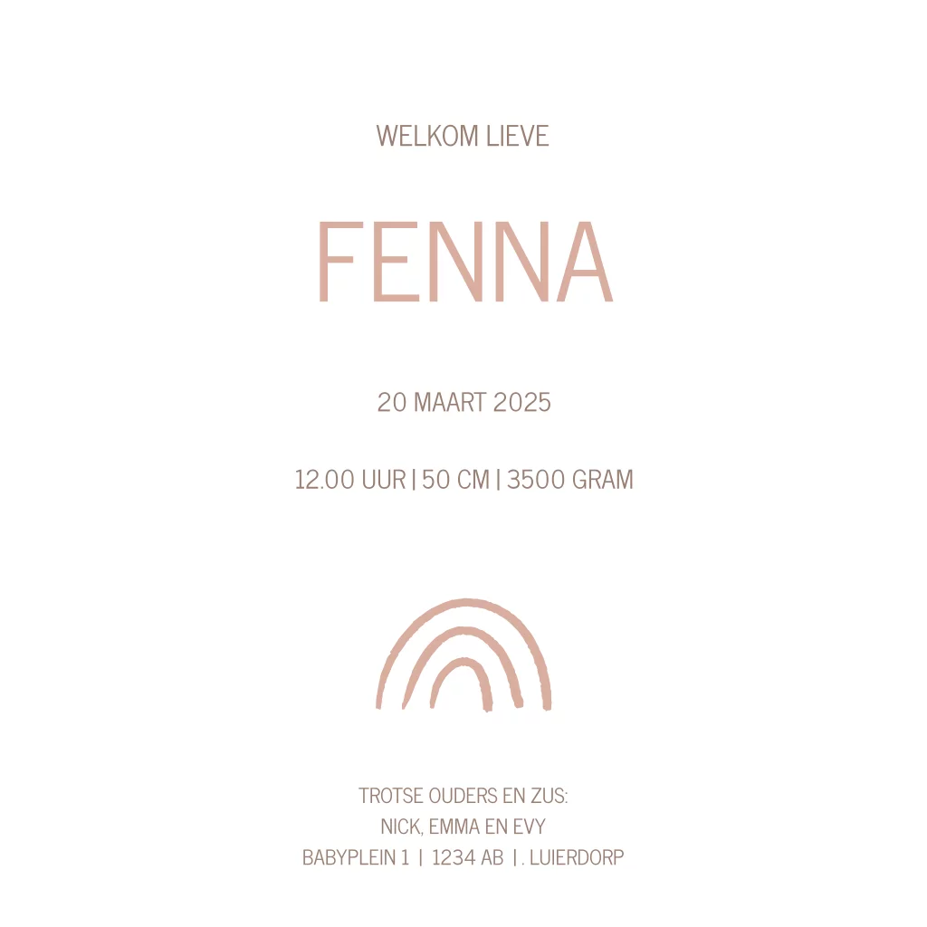 Geboortekaartje meisje regenboogje rosegoud krijtachtergrond