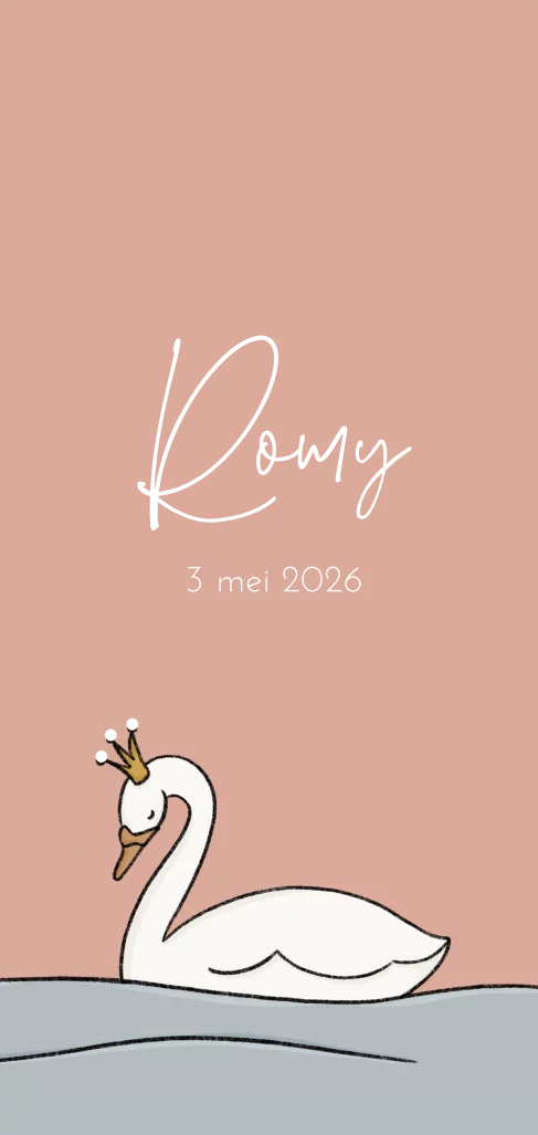 Geboortekaartje zwaan voor een meisje roze met kroon