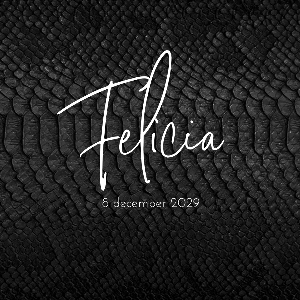 Stoer geboortekaartje meisje slangenleer look met rose foliedruk