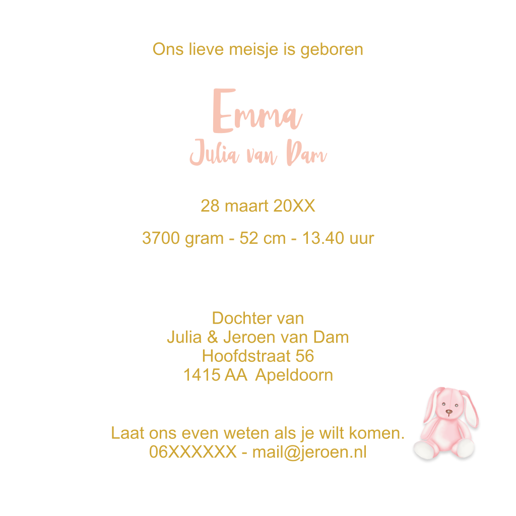 Lief geboortekaartje voor een meisje met wiegje en foliedruk