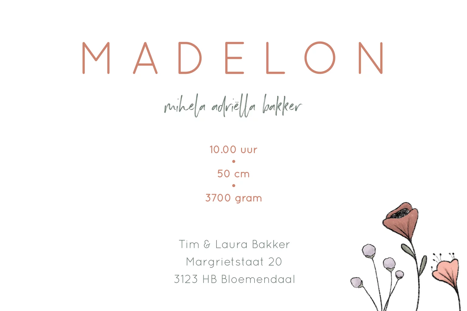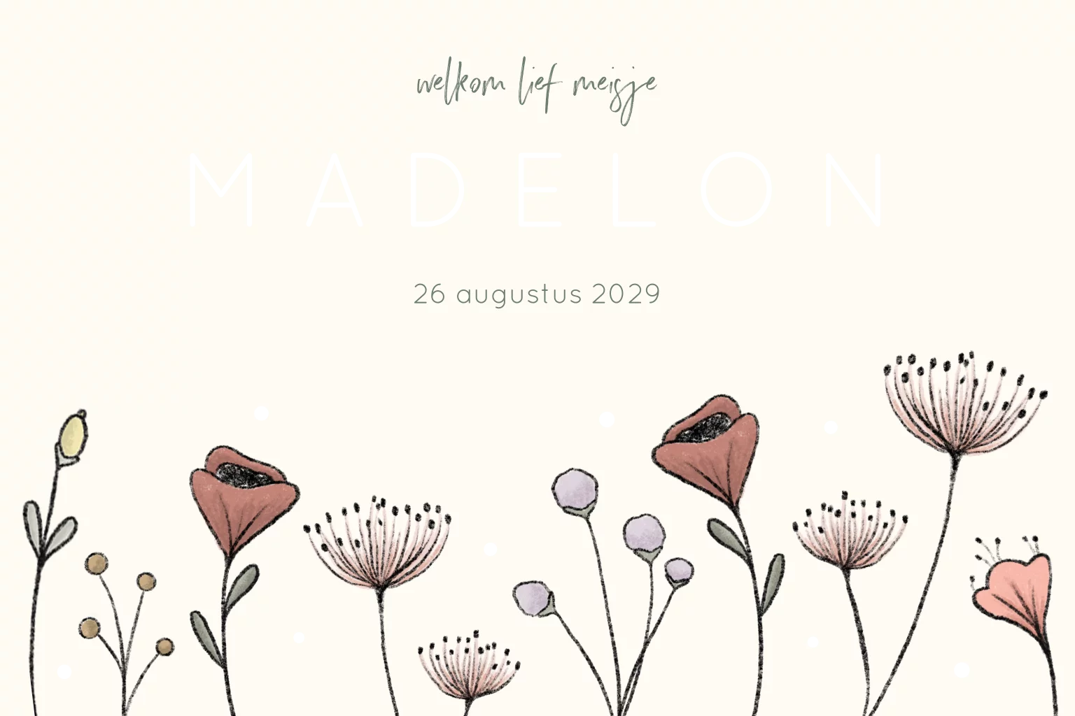 Meisje geboortekaartje bloemen met rosefolie en klaproos