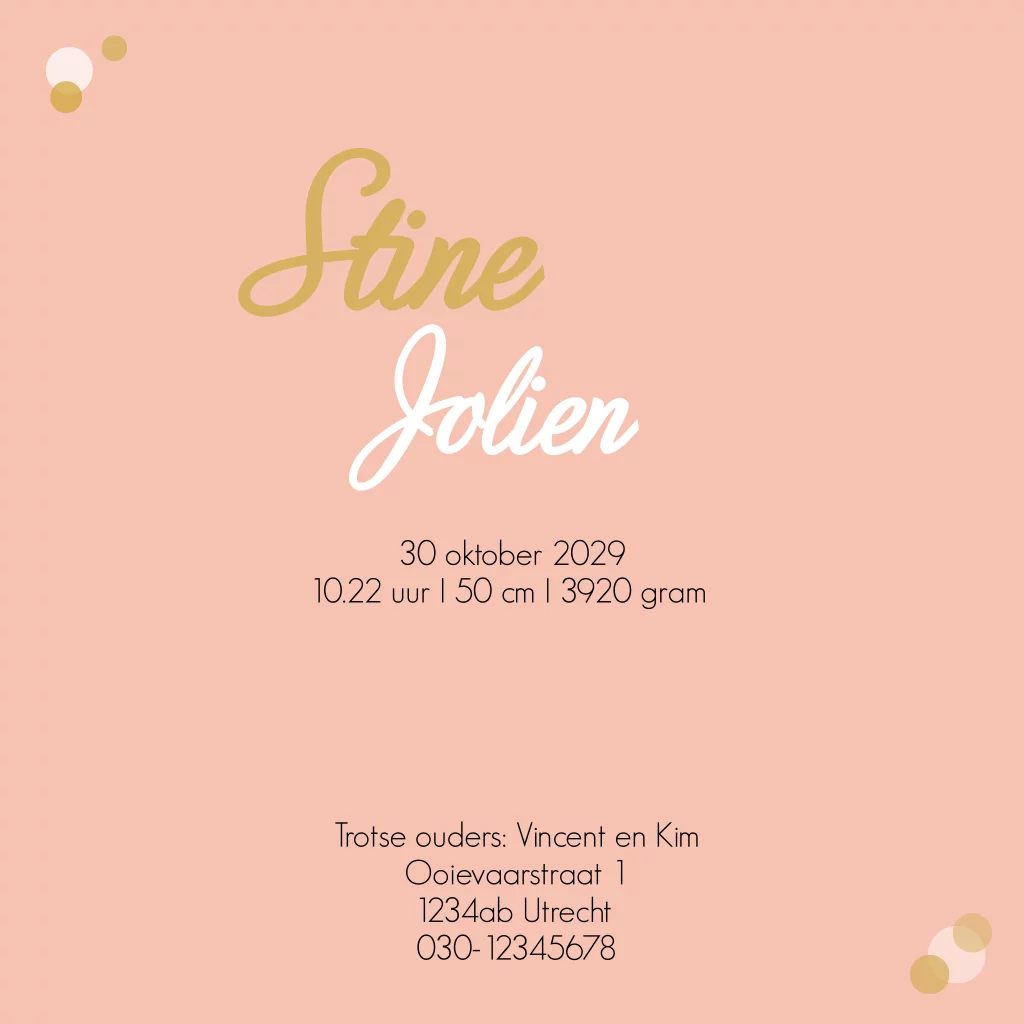 Geboortekaartje meisje silhouet bellenblaas foliedruk