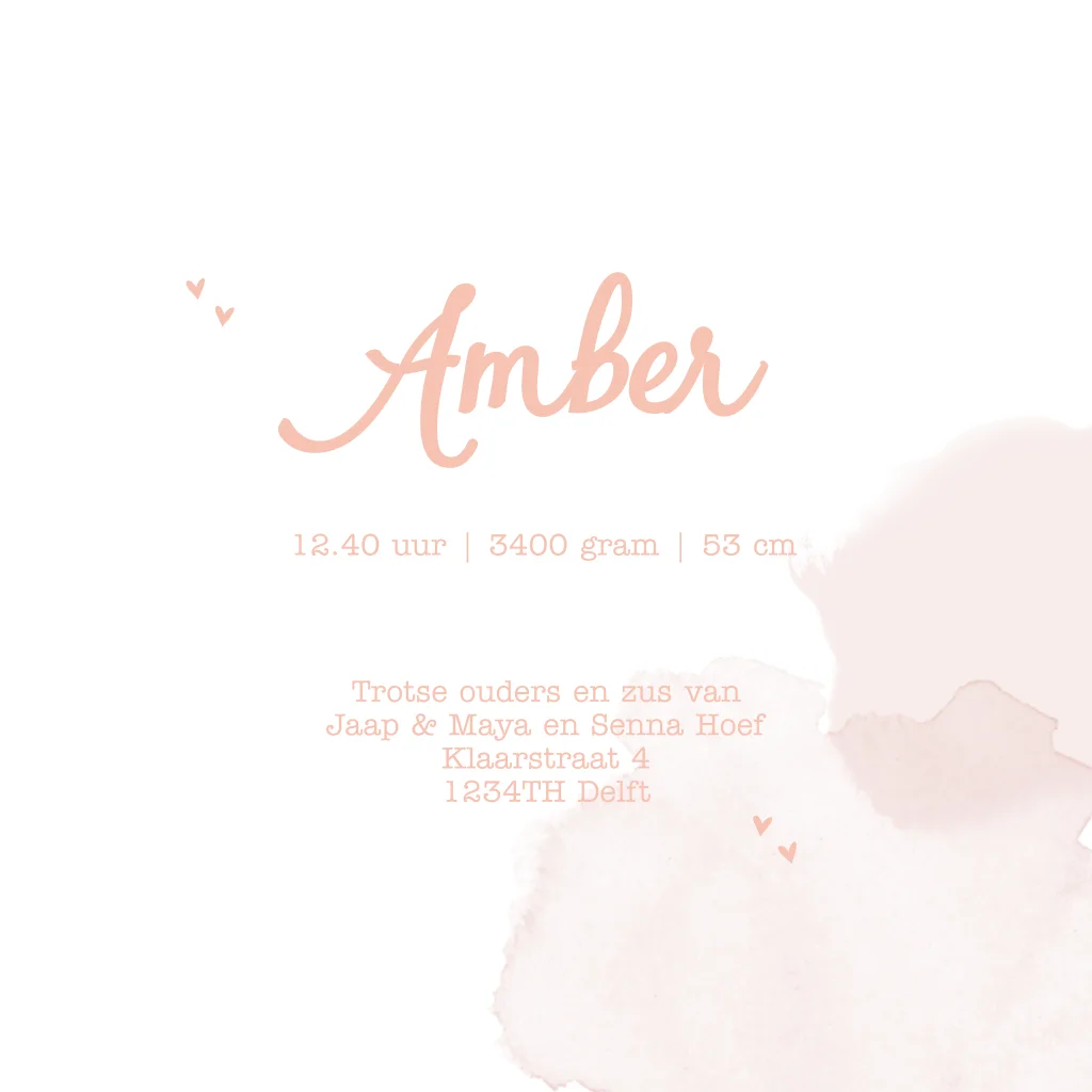 Tweede kind geboortekaartje baby meisje en grote broer aan de hand voor een 2e kindje oud-roze met rose foliedruk. (21406)