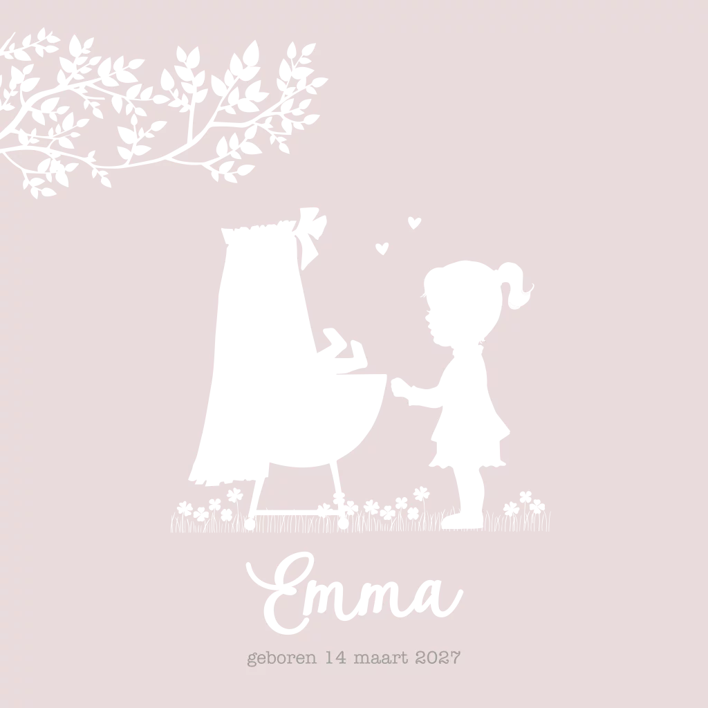 2e kindje geboortekaartje kleur meisjes wiegje met zus goudfolie