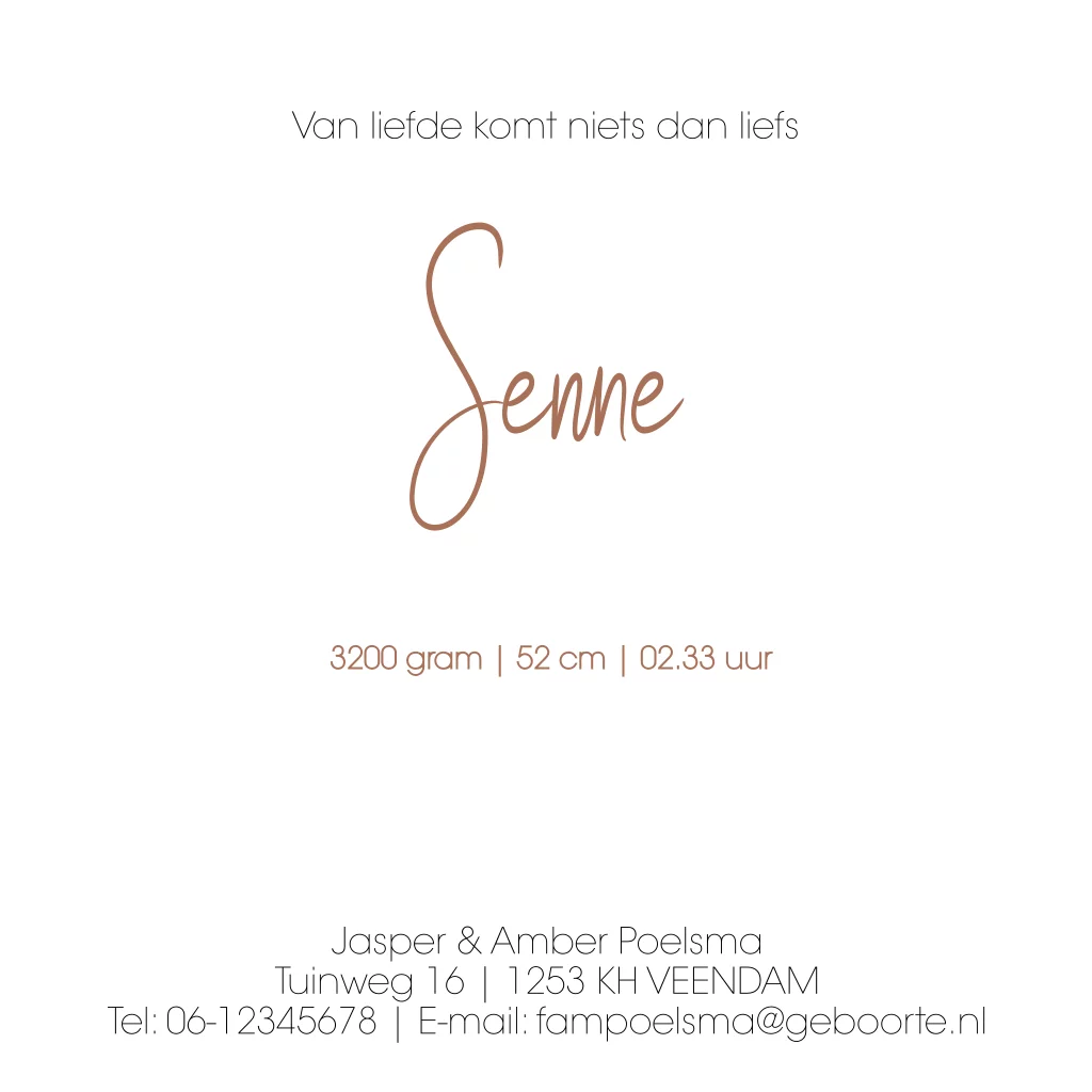 Strak geboortekaartje jongen of meisje met eigen foto en hoogglans koper lak. (20245)