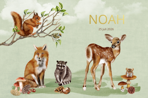 Elk geboortekaartje is met zorg ontworpen, zodat het helemaal past bij jullie stijl en het verhaal van jullie kindje. Kies bijvoorbeeld een kaartje met een speelse eekhoorn die nieuwsgierig in de bomen kijkt of een lieflijk ontwerp met zachte kleuren en bladeren. Je kunt alles eenvoudig personaliseren: van de naam en geboortedatum tot een persoonlijke boodschap voor familie en vrienden.