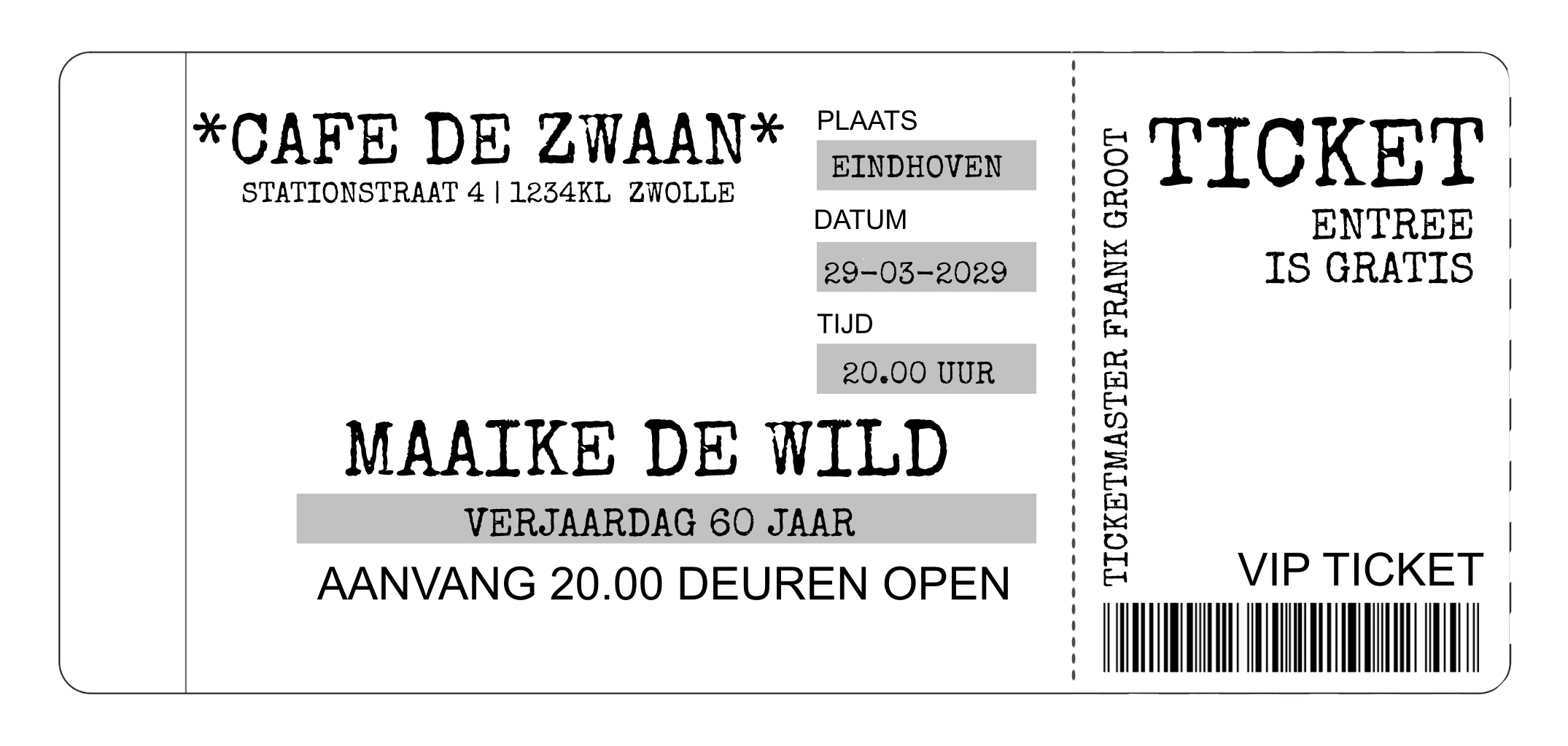 Hippe uitnodiging 60e verjaardag in ticket foliedruk. (20392)