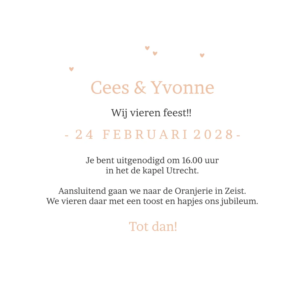 Uitnodiging 50 jaar getrouwd om te gebruiken als uitnodiging voor een feest foliedruk in hartjes cirkel. (20396)