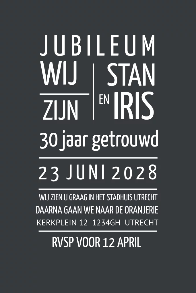 30 jaar getrouwd uitnodiging Jubileum modern met goudfolie druk. (20384)