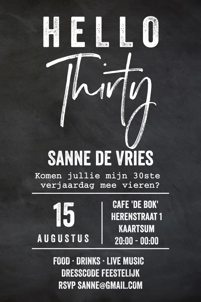 Foliedruk uitnodiging 30ste verjaardag krijtbord