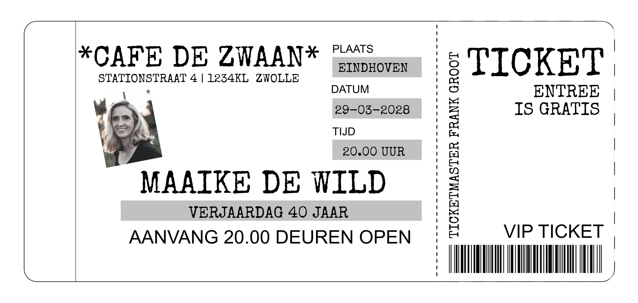 Hippe uitnodiging 40e verjaardag in ticket foliedruk