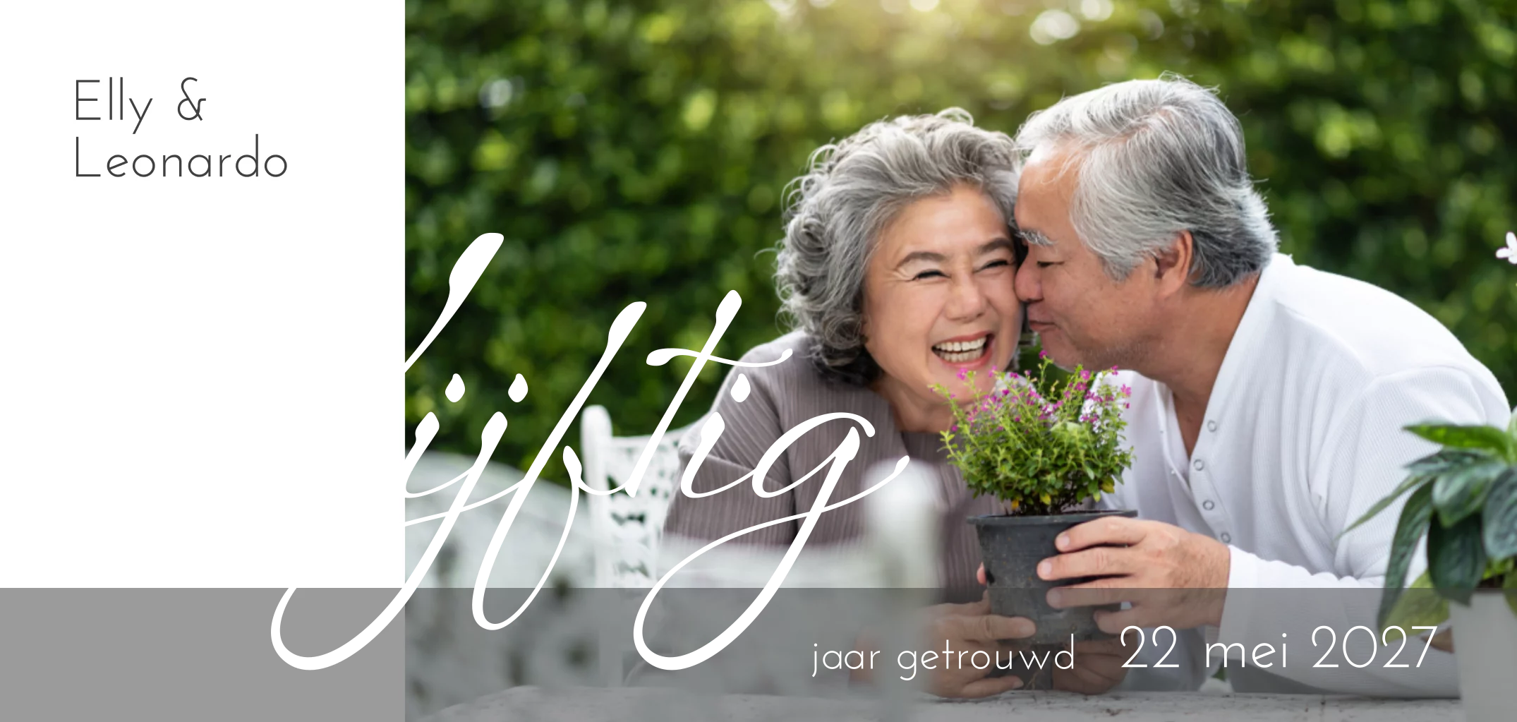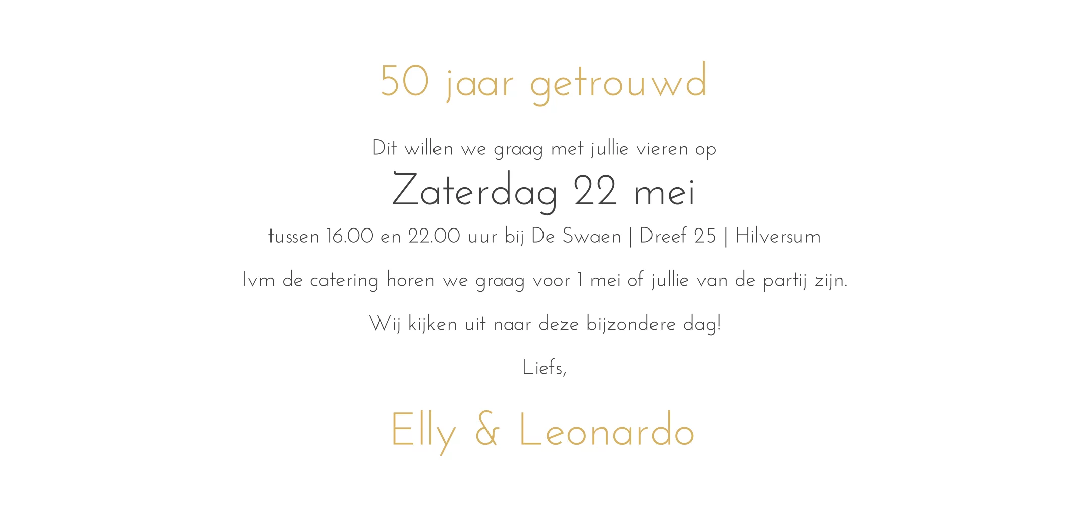 Prachtige uitnodiging 50 jaar getrouwd goudfolie