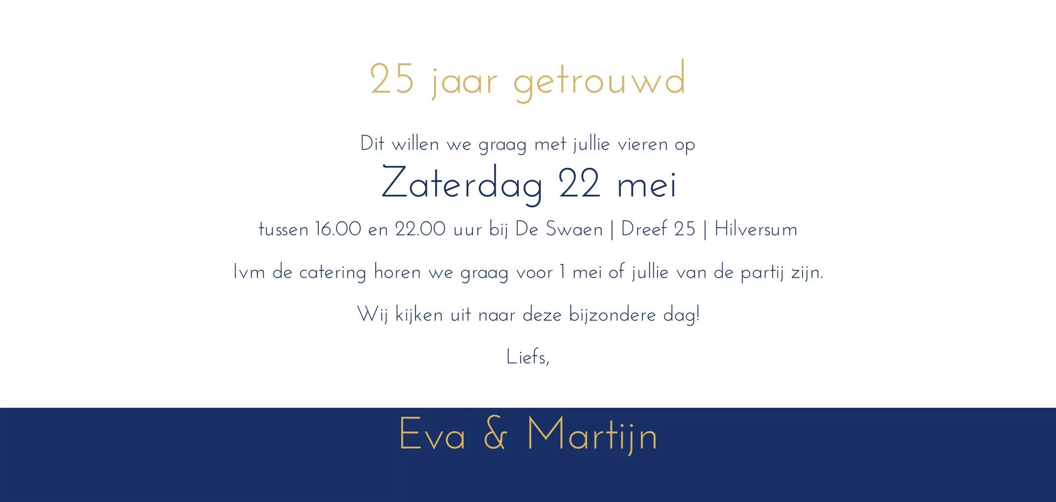 Uitnodiging jubileum 25 jaar eigen foto typografie goudfolie