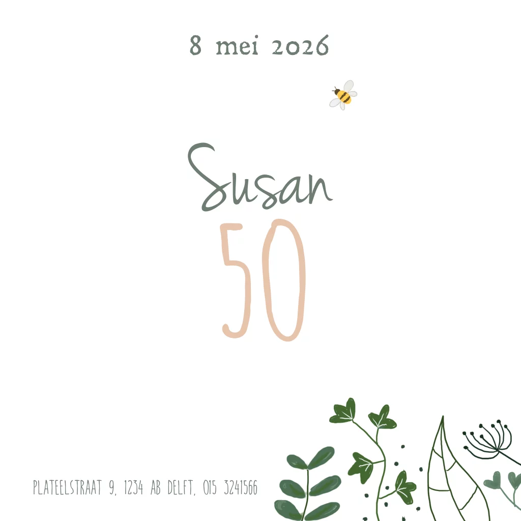 Uitnodigingskaart 50 jaar met bladeren en bloemen