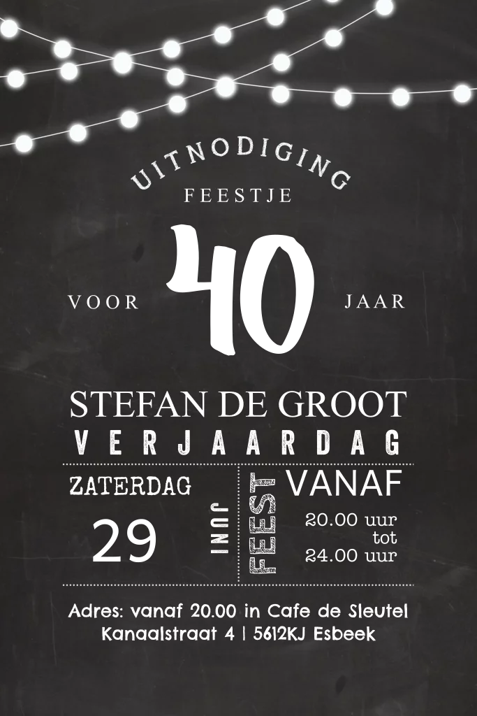 40 jaar uitnodiging krijtbord staand enkel goudfolie