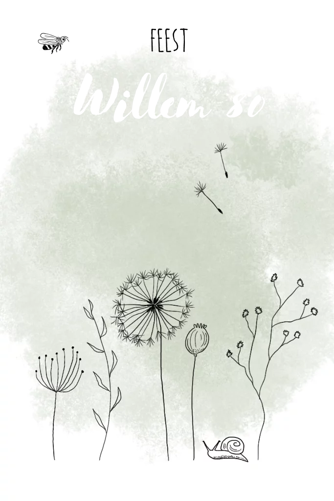 Een hippe verjaardagsuitnodiging 80 jaar met plantjes, aquarel en goudfolie. Leeftijd is naar wens aan te passen. (21048)