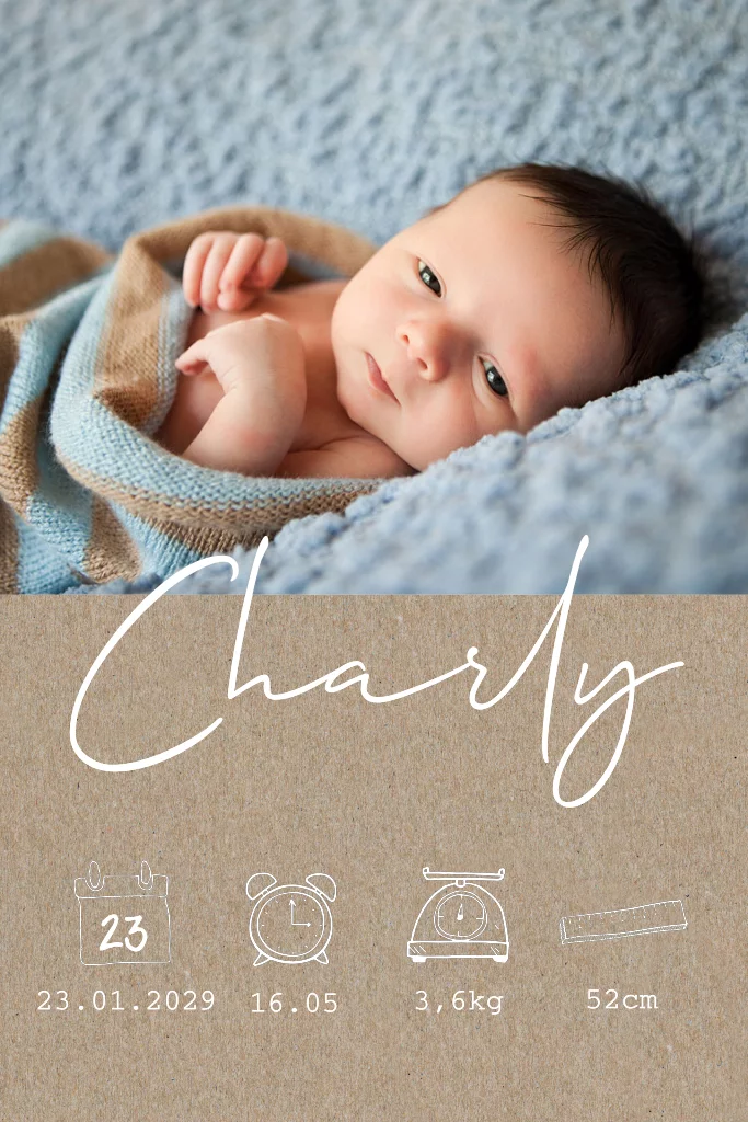 Foto geboortekaartje voor een jongetje of meisje met echt kraft papier