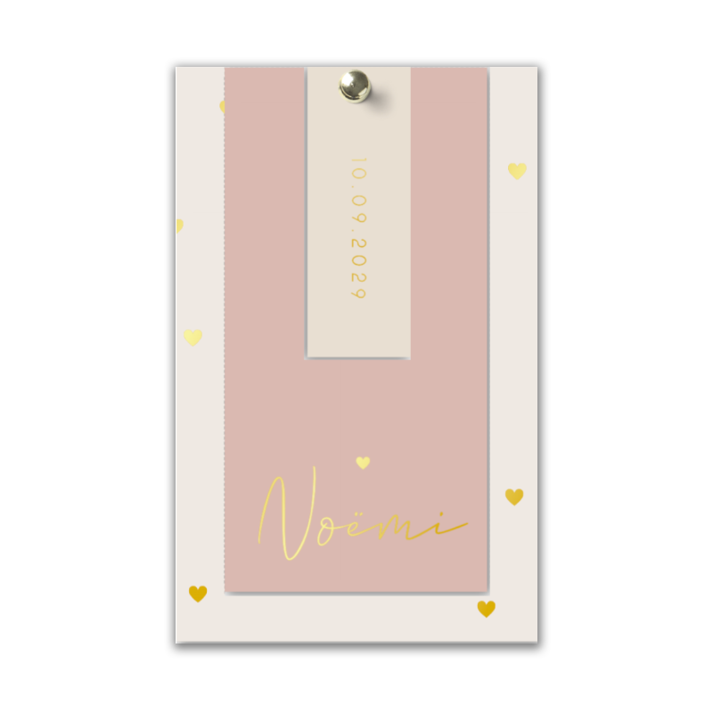 Label geboortekaartje meisje met goudfolie en label
