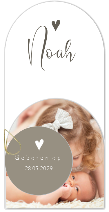 Een label geboortekaartje unisex met eigen foto en warme kleuren
