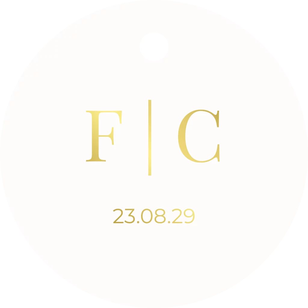 Extra rond label voor aan je trouwkaart. Met foliedruk en boor gaatje. 16 labels per vel / ⌀ 4 cm
