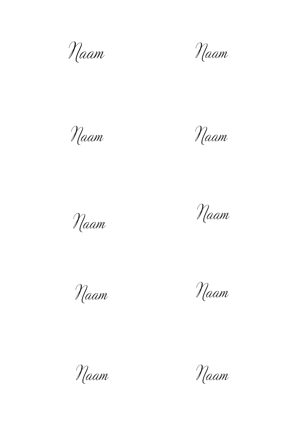 60 naamkaartjes met boogvorm 8 cm breed. Prijs gebaseerd op 6 vellen met 10 kaartjes. Je kunt ook minder vellen bestellen voor een lagere prijs.